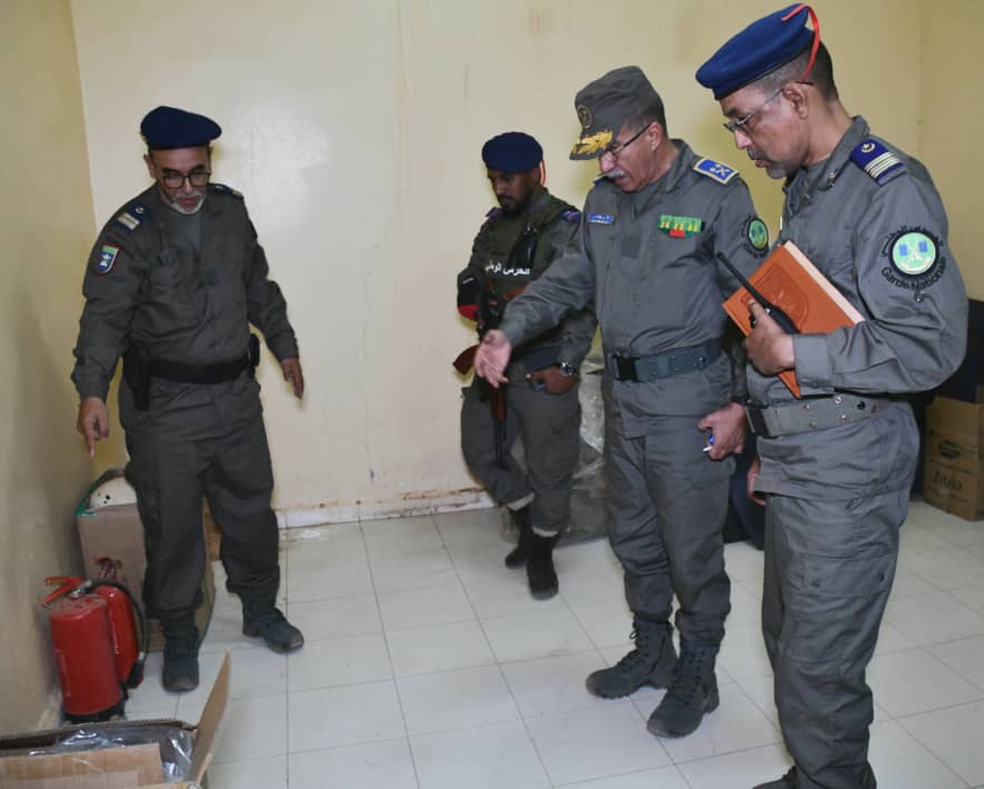 قصد الاطلاع عن قرب على ظروف عملها و النواقص التي تعيقه. و هكذا فقد استعرض قائد الأركان عند وصوله مقر قيادة التجمع الجهوي وحدةً أدت له تحية الشرف قبل أن يصافح قادة الفصائل و الفرق. و من جانبٍ آخر فقد استمع القائد إلى عرض مفصل قدم فيه المقدم أحمد ولد الشيخ قائد التجمع الجهوي المزور تشكلته عدًا و توزيعًا و توظيفًا، مع التنويه إلى بعض المعوقات المطروحة له. و بعد نهاية العرض عقد اللواء قائد الأركان اجتماعا مع الأطر و بعض الحرسيين حيث شرح لهم الهدف من زيارته و استمع إلى مشاكلهم و آرائهم و مقترحاتهم و أصدر تعليماته في شأنها، ثم تجول صحبة الوفد المرافق له داخل ثكنة التجمع الجهوي و السجن المدني لتفقد حالة العتاد و المباني.