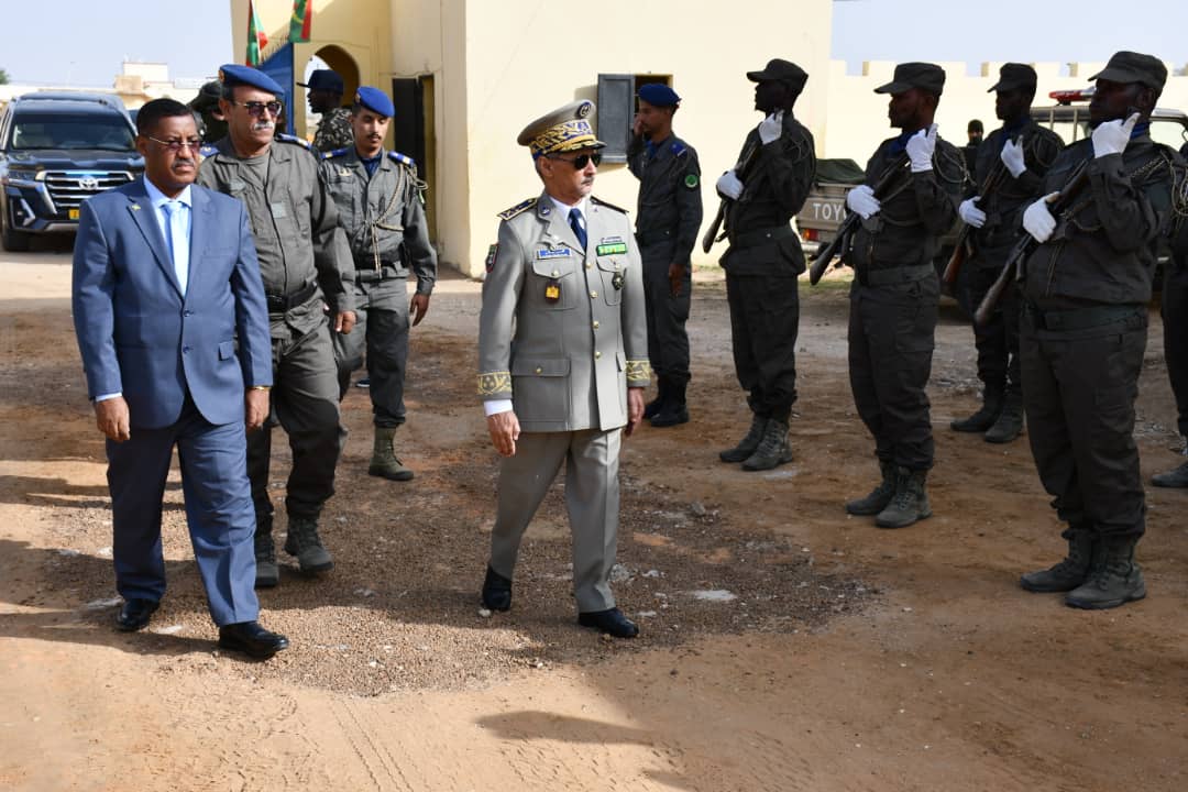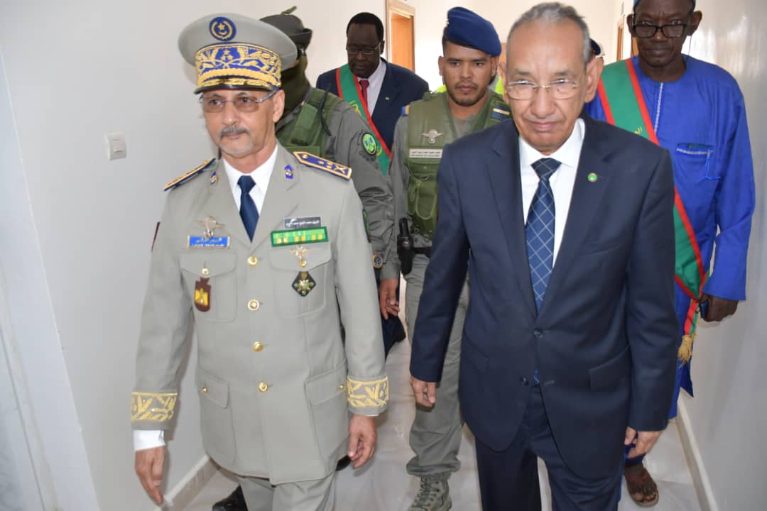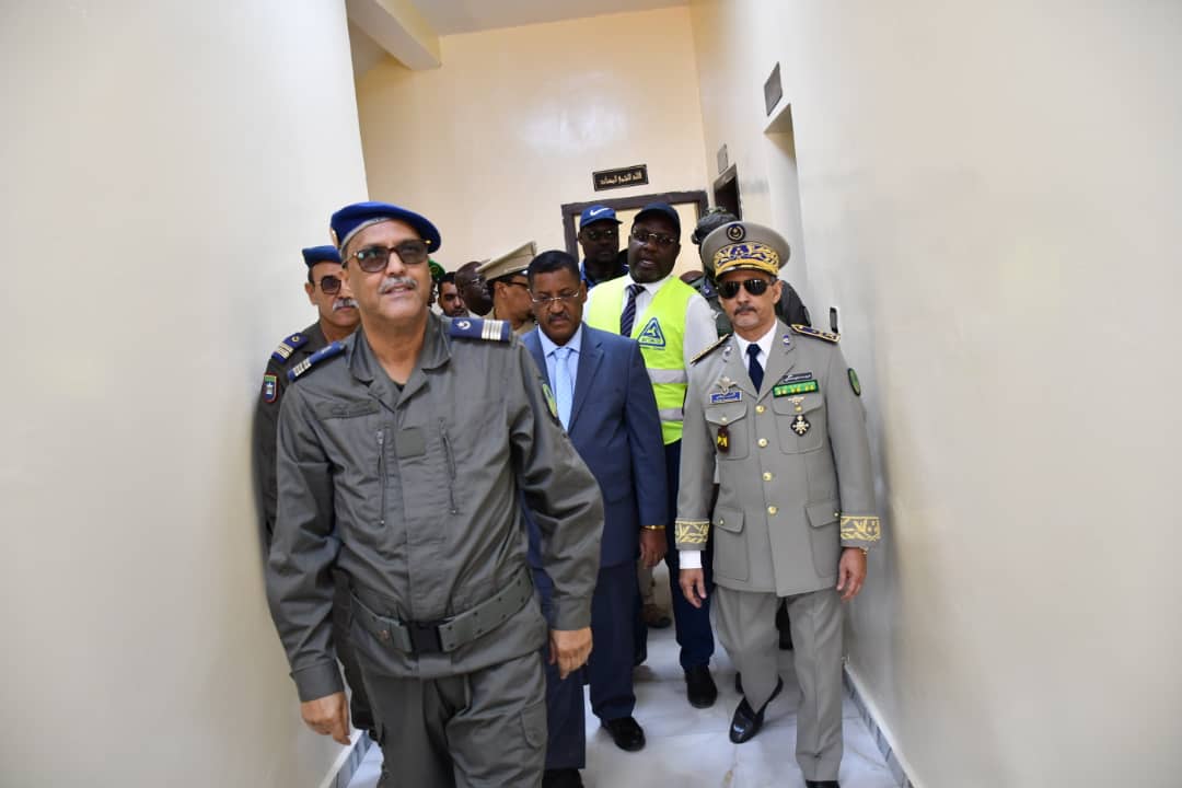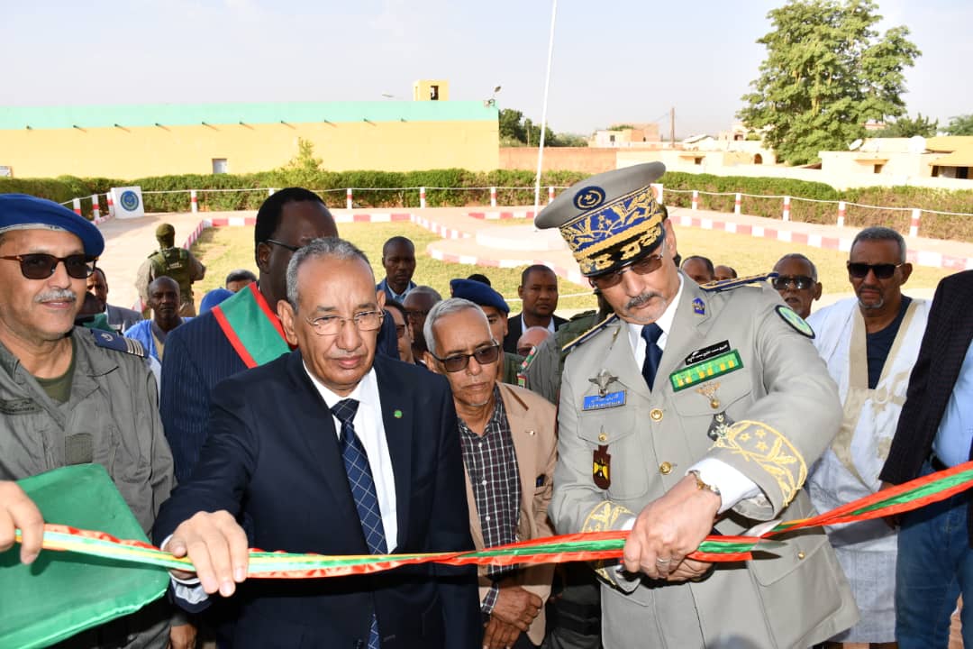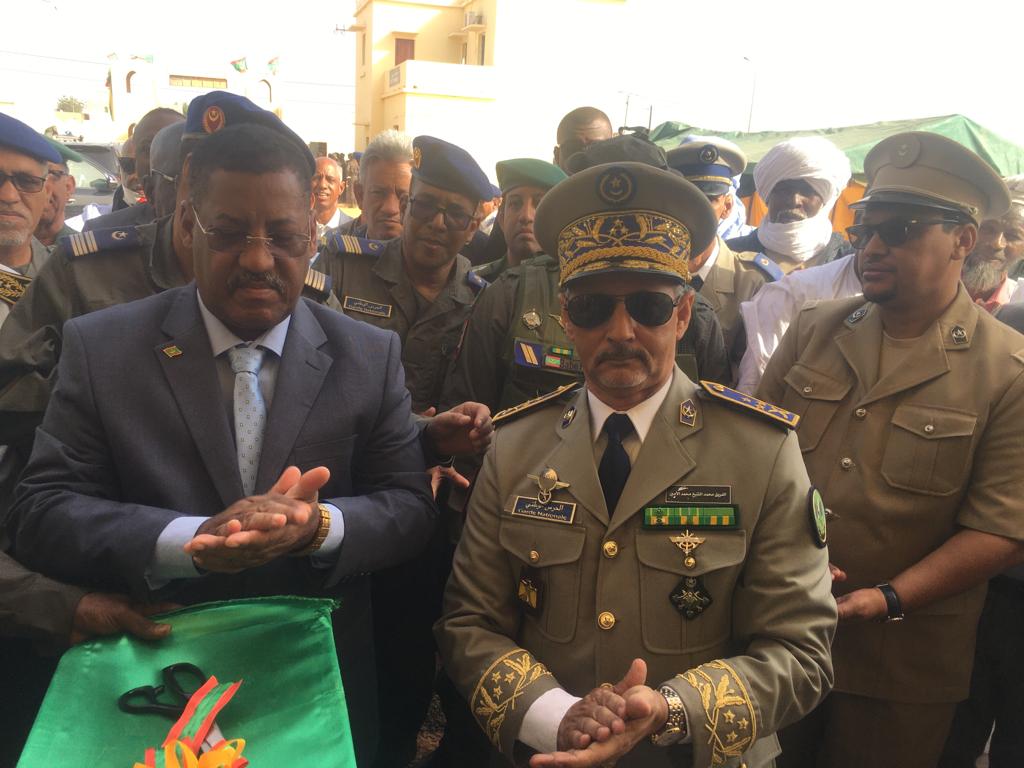 في إطار الاحتفالات المخلدة للذكرى ال 62 لعيد الاستقلال الوطني المجيد الذي يصادف 28 نوفمبر من كل سنة أشرف الفريق محمد الشيخ محمد الأمين رفقة والي كوركل السيد سيدن ولد سدابه اليوم على تدشين مقر جديد للتجمع الجهوي للحرس رقم11 . بعد تلقي الشروح الوافية من طرف المهندس القائم بأعمال بناء المقر الجديد قام قائد اركان الحرس الوطني رفقة والي كركل بقطع الشريط الرمزي والتجول داخل المقر الجديد. ويدخل انشاء هذا المقر والمقرات التي تم تشيدها هذه السنة؛ مقر التجمع الجهوي رقم5 ومقرالتجمع الجهوي رقم6 ومقر الوحدة الخاصة بنواكشوط في إطار خطة عمل وضعتها قيادة اركان الحرس الوطني على مدى ثلاث سنوات وستشمل عدة مقرات اخرى وهو ما يوضح الجهود التي تبذلها قيادة أركان الحرس الوطني لتطوير القطاع والرفع من جاهزيته. وقد شهد الحرس الوطني في السنوات الأخيرة بفضل التوجهات السامية لفخامة رئيس الجمهورية القائد الأعلى للقوات المسلحة وقوات الامن تطورا شاملا في مجالات التكوين والتأهيل والتنظيم والبنى التحتية والتجهيزات وتحسين الظروف العامة للأفراد. جرى حفل التدشين بحضور العقيد تقي الله ولد محمد المصطفى مدير البنى التحتية بقيادة اركان الحرس الوطني والمقدم محمد البخاري بمب احمد الهيب قائد التجمع الجهوي للحرس الوطني رقم11 و السلطات الإدارية والأمنية بالولاية.