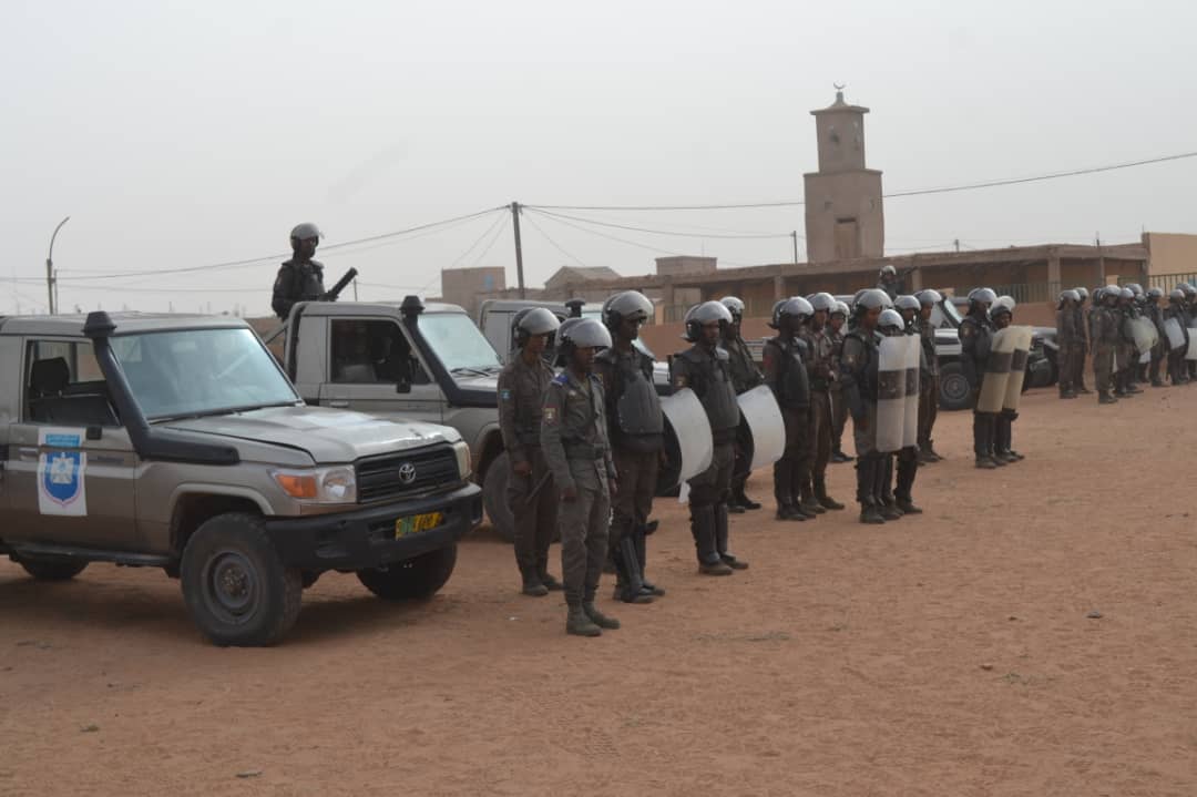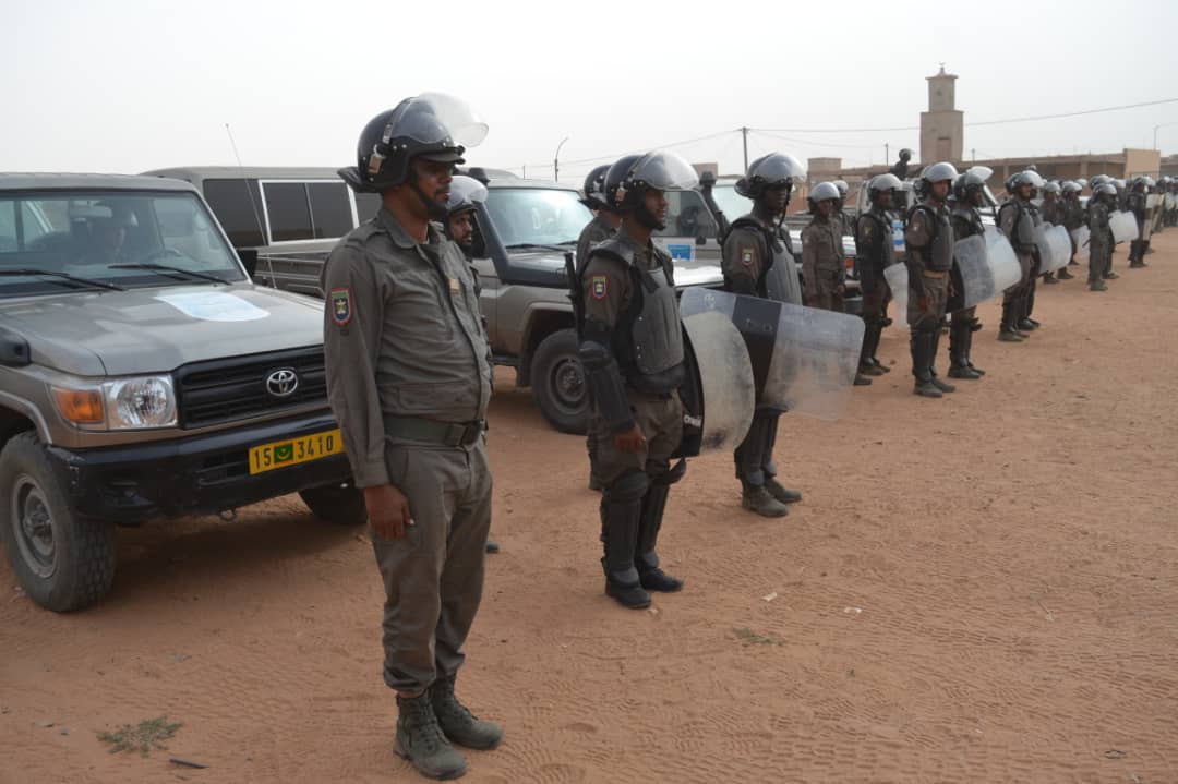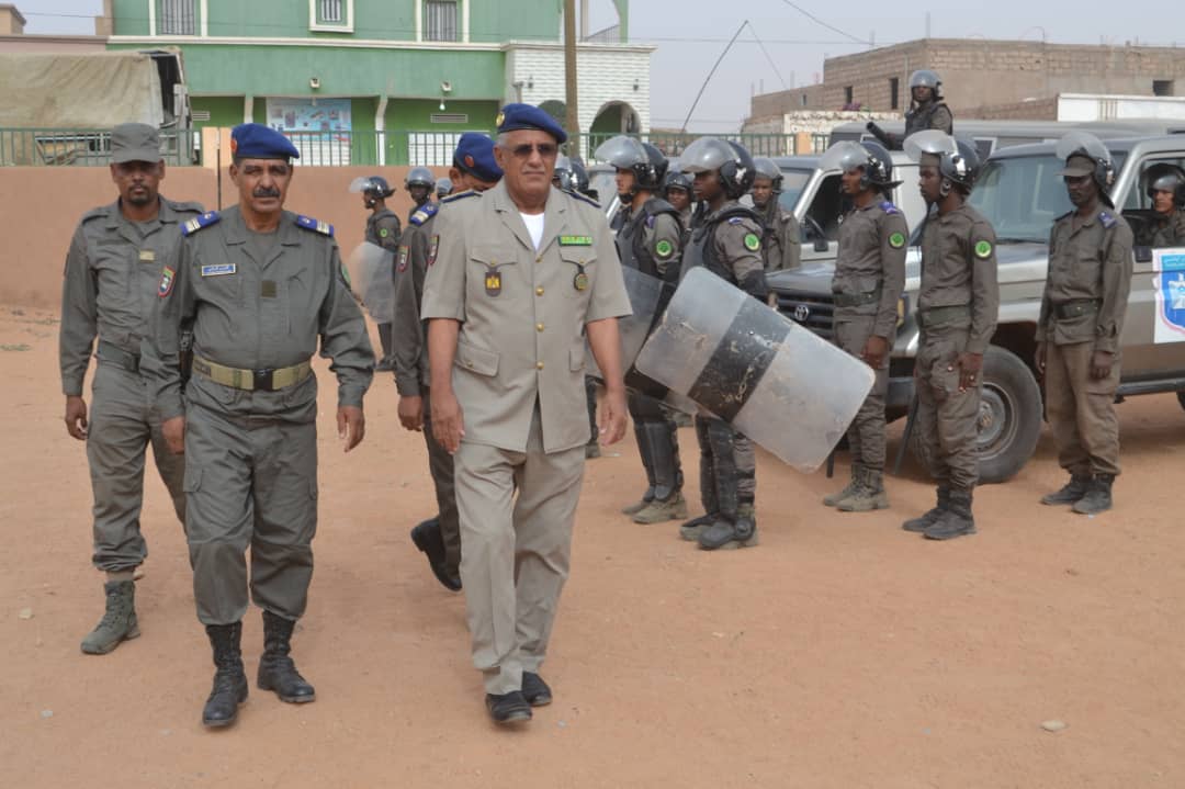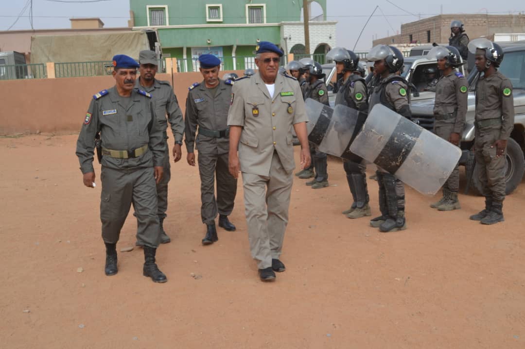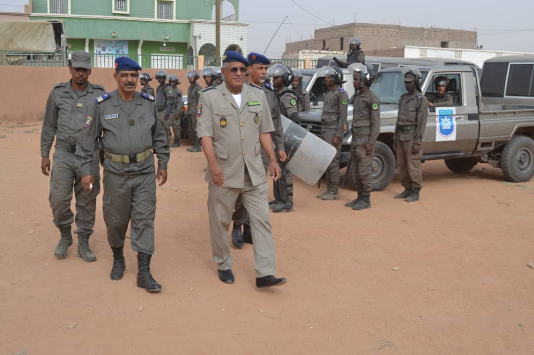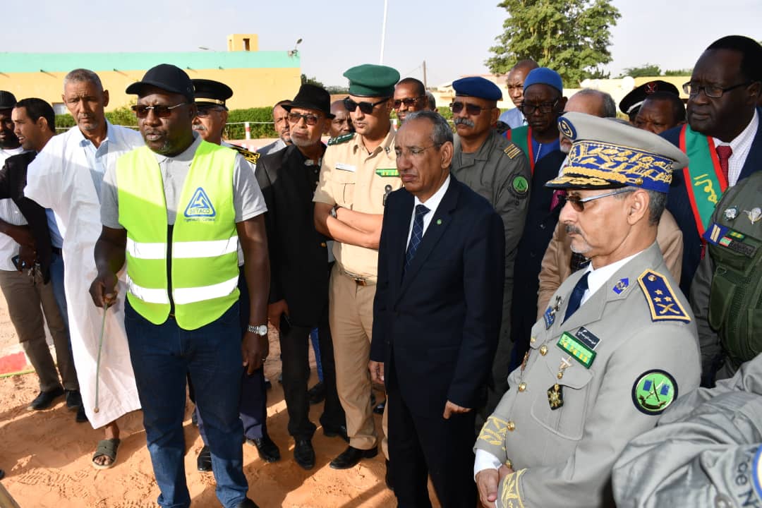 في إطار الاحتفالات المخلدة للذكرى ال 62 لعيد الاستقلال الوطني المجيد الذي يصادف 28 نوفمبر من كل سنة أشرف الفريق محمد الشيخ محمد الأمين رفقة والي كوركل السيد سيدن ولد سدابه اليوم على تدشين مقر جديد للتجمع الجهوي للحرس رقم11 . بعد تلقي الشروح الوافية من طرف المهندس القائم بأعمال بناء المقر الجديد قام قائد اركان الحرس الوطني رفقة والي كركل بقطع الشريط الرمزي والتجول داخل المقر الجديد. ويدخل انشاء هذا المقر والمقرات التي تم تشيدها هذه السنة؛ مقر التجمع الجهوي رقم5 ومقرالتجمع الجهوي رقم6 ومقر الوحدة الخاصة بنواكشوط في إطار خطة عمل وضعتها قيادة اركان الحرس الوطني على مدى ثلاث سنوات وستشمل عدة مقرات اخرى وهو ما يوضح الجهود التي تبذلها قيادة أركان الحرس الوطني لتطوير القطاع والرفع من جاهزيته. وقد شهد الحرس الوطني في السنوات الأخيرة بفضل التوجهات السامية لفخامة رئيس الجمهورية القائد الأعلى للقوات المسلحة وقوات الامن تطورا شاملا في مجالات التكوين والتأهيل والتنظيم والبنى التحتية والتجهيزات وتحسين الظروف العامة للأفراد. جرى حفل التدشين بحضور العقيد تقي الله ولد محمد المصطفى مدير البنى التحتية بقيادة اركان الحرس الوطني والمقدم محمد البخاري بمب احمد الهيب قائد التجمع الجهوي للحرس الوطني رقم11 و السلطات الإدارية والأمنية بالولاية.