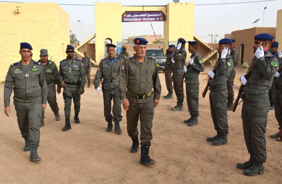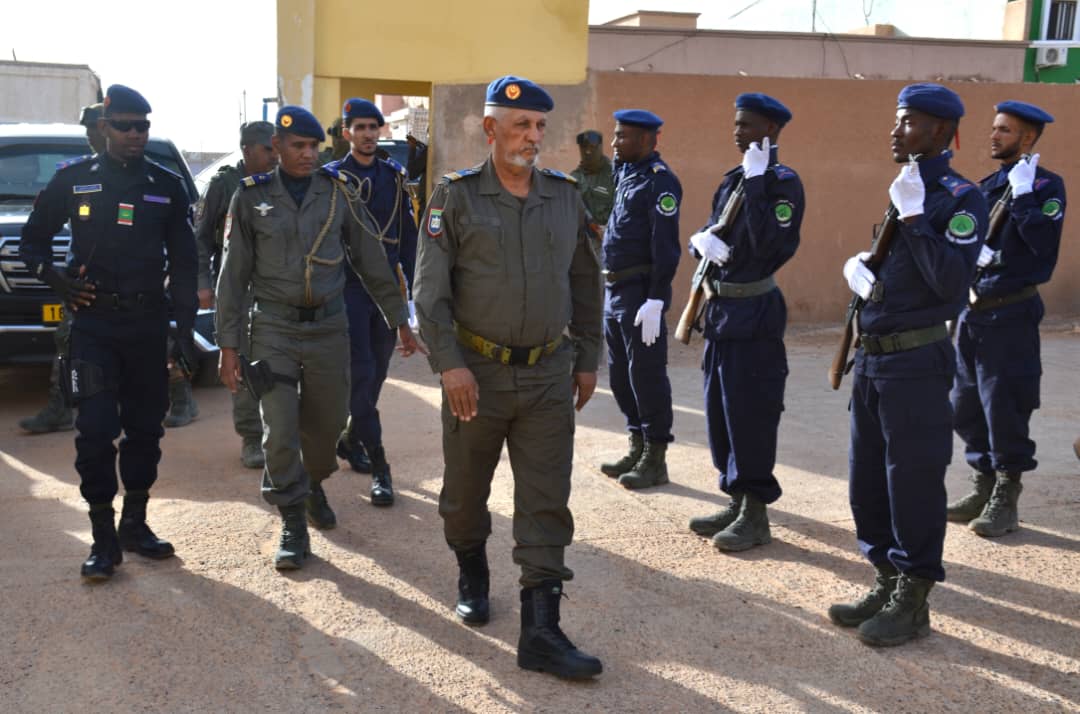 أدى العقيد أحمد تاشفين قائد أركان الحرس الوطني المساعد صباح يوم الخميس الموافق 29 فبراير 2024 زيارة عمل للتجمع الجهوي رقم 12بمدينة بأكجوجت في ولاية إينشيري. إستعرض العقيد قائد الأركان المساعد فور وصوله مقر التجمع الجهوي وحدة أدت له تحية الشرف قبل أن يصافح الأطر العاملين بالتجمع الجهوي، كما قدم له المقدم مولاي الحسن ولد مولاي عمار قائد التجمع عرضًا مفصلا حول التجمع و مهامه والمشاكل المطروحة له . ثم تفقد العقيد قائد الأركان المساعد حالة العتاد و مباني التجمع و عقد إجتماعا بقادة الفصائل و الفرق و بعض من الحرسيين أوضح لهم خلاله أن الهدف من زيارته هو الإطلاع على الحالة العامة للتجمع ،و أكد العقيد قائد الأركان المساعد أن قائد أركان الحرس الوطني اللواء محمد لحريطاني يولي أولوية خاصة لتنمية المصادر البشرية و الرفع من مستوى جاهزية الوحدات العملياتية. كما حثهم على التحلي بالمسؤولية و التحلي بالإنضباط و فرضه و الحفاظ على المظهر و تطبيق التعليمات بجدية. يرافق العقيد قائد الأركان المساعد في هذه الزيارة العقيد أحمد ولد اعمين مدير البنى التحتية بقيادة أركان الحرس الوطني