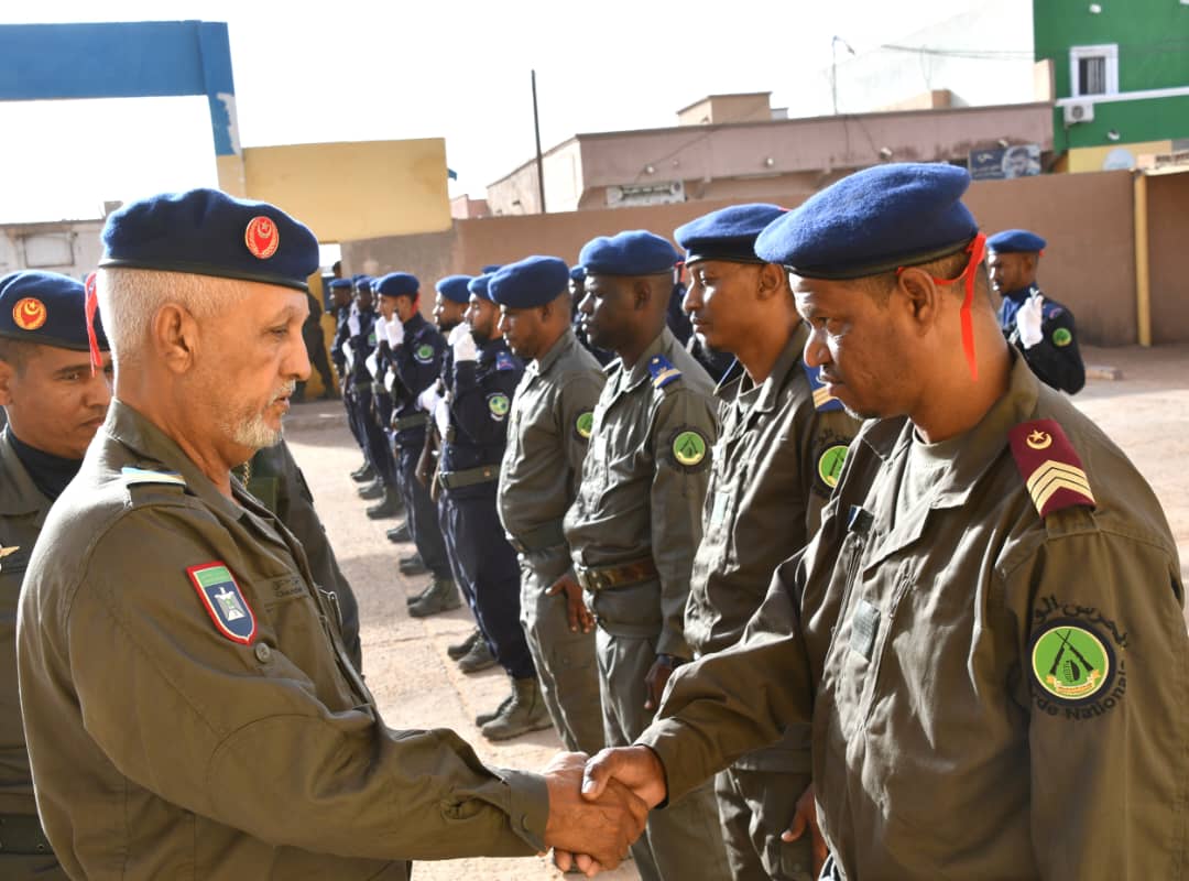 اشرف اللواء محمد ولد احريطاني قائد اركان الحرس الوطني رفقة مساعده العقيد احمد ولد تاشفين يوم الثلاثاء الموافق 11 يونيو 2024 علي انطلاق مناورة في
