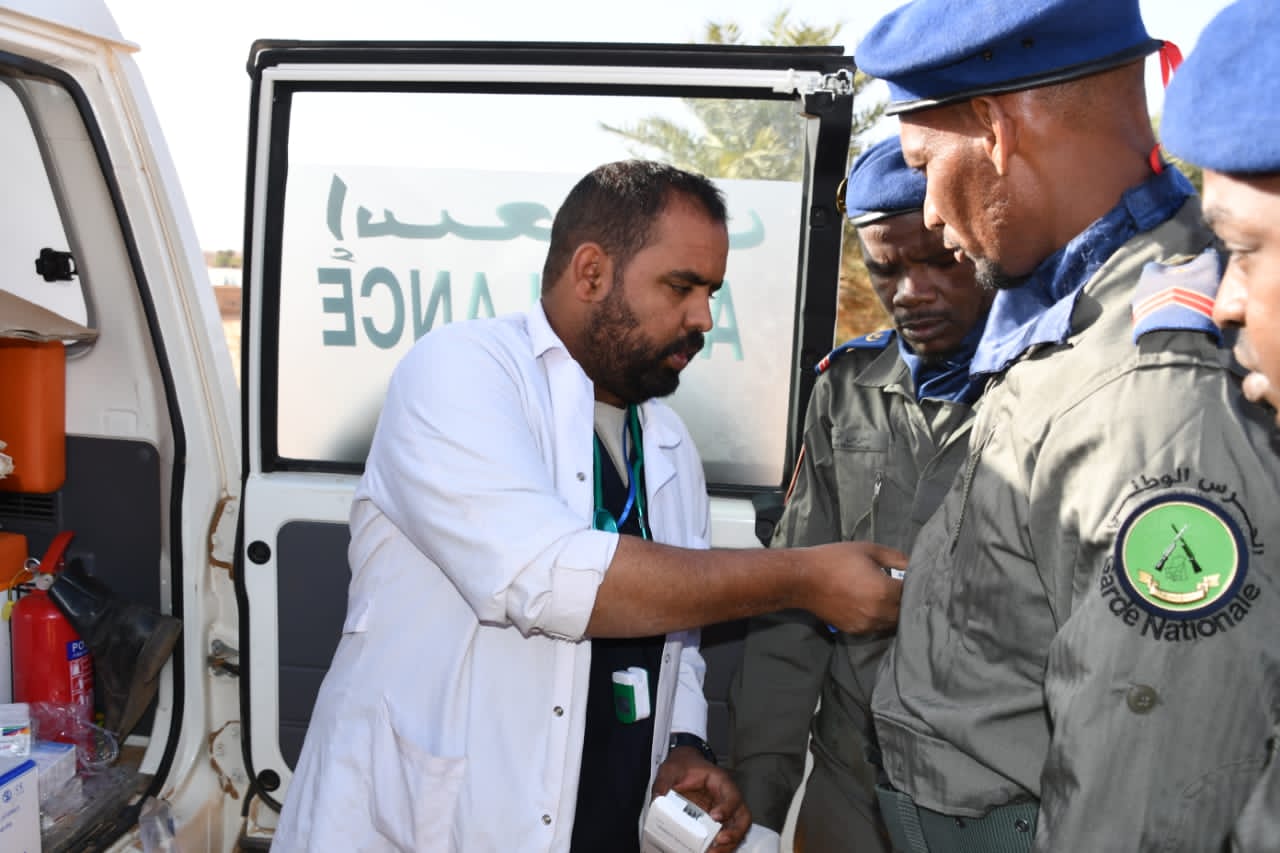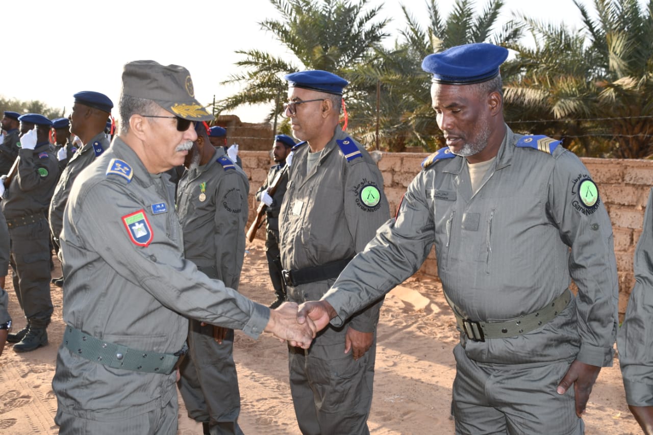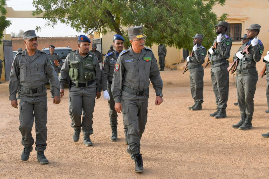 أدى اللواء محمد لحريطاني قائد أركان الحرس الوطني صباح اليوم (السبت 27 يناير 2024) زيارة اطلاع للتجمع الجهوي رقم 4 المتمركز بمدينة الاك / ولاية لبراكنه. بدأ السيد القائد زيارته هذه بوحدة تأمين السجن المدني بمدينة ألاگ حيث شرح له النقيب قائد الوحدة خطة تأمين السجن و طريقة التعامل مع نزلاءه. ثم بعد ذلك انتقل وفد قائد الأركان إلى مقر قيادة التجمع الجهوي الذي استُقبل
