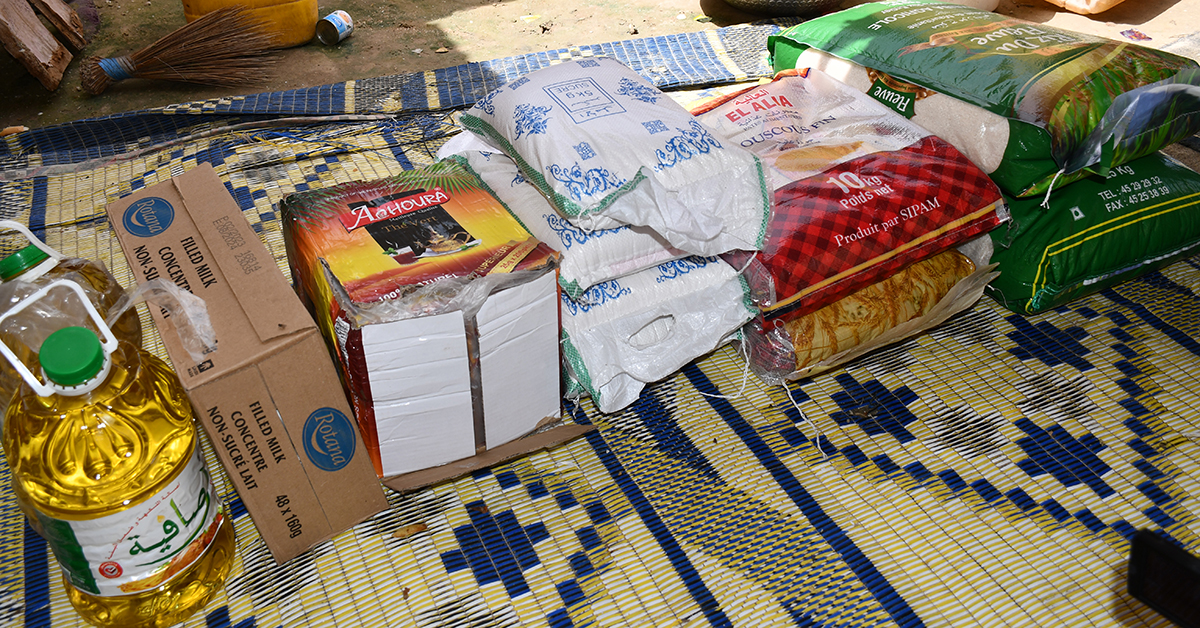 مبالغ نقدية ومواد غذائية نذكر منها الأرز – المعجونات (ماكروني) – الزيت –اللبن المعلب (غلوريا) – الشاي – السكر .